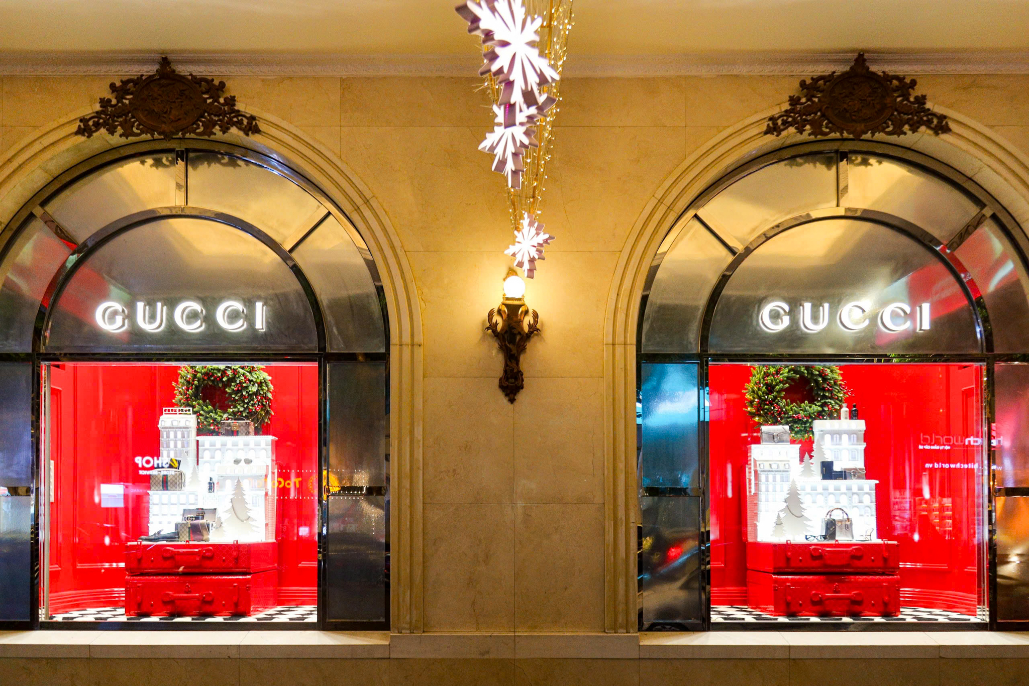 Phía cửa ra vào của một TTTM lớn nằm trên phố Tràng Tiền được trang trí lộng lẫy, các nhãn hàng cũng đưa ra các BST cho dịp Giáng sinh nhằm thu hút sức mua của khách hàng. (Ảnh: Đức Anh)