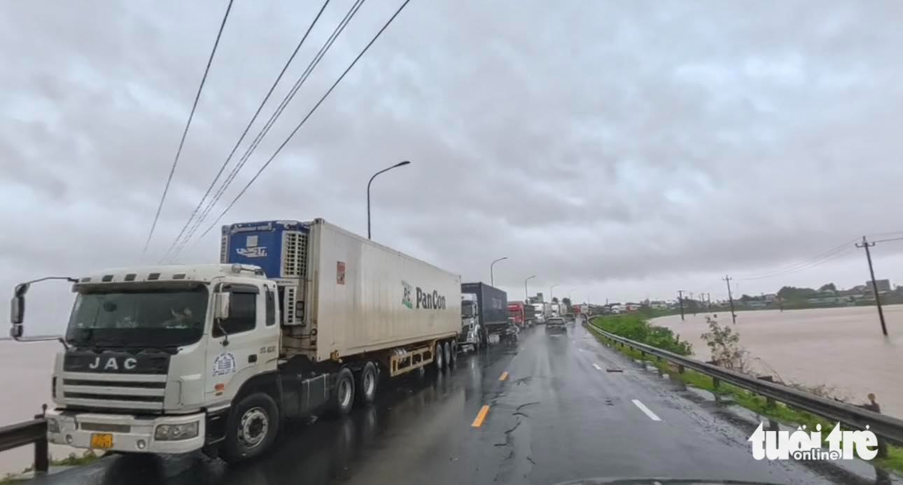 Xe vẫn kẹt hàng dài trên quốc lộ 1 (phường Phú Yên, tỉnh Đắk Lắk) - Ảnh: MINH PHƯƠNG