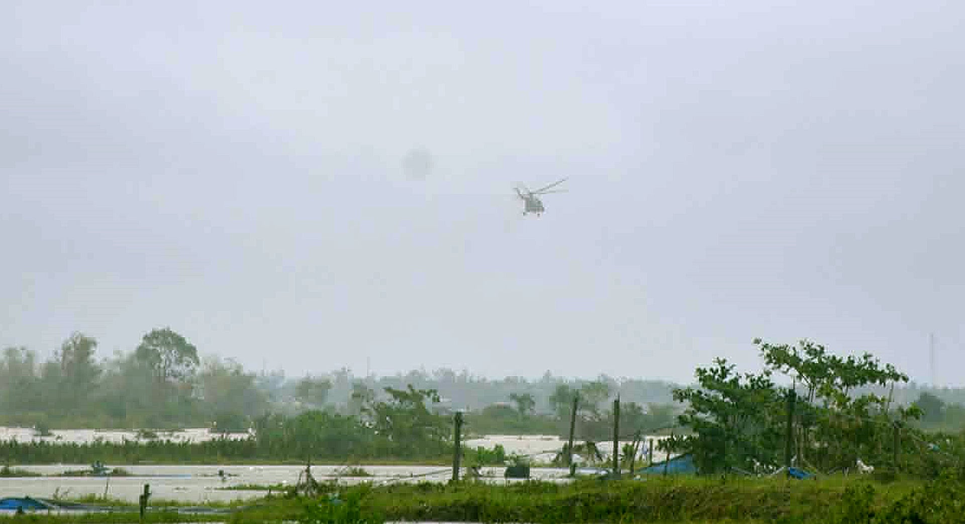 Lúc 15h45, một chiếc trực thăng đã bay khảo sát vùng lũ xã Hòa Xuân, tỉnh Đắk Lắk (thị xã Đông Hòa, Phú Yên cũ).